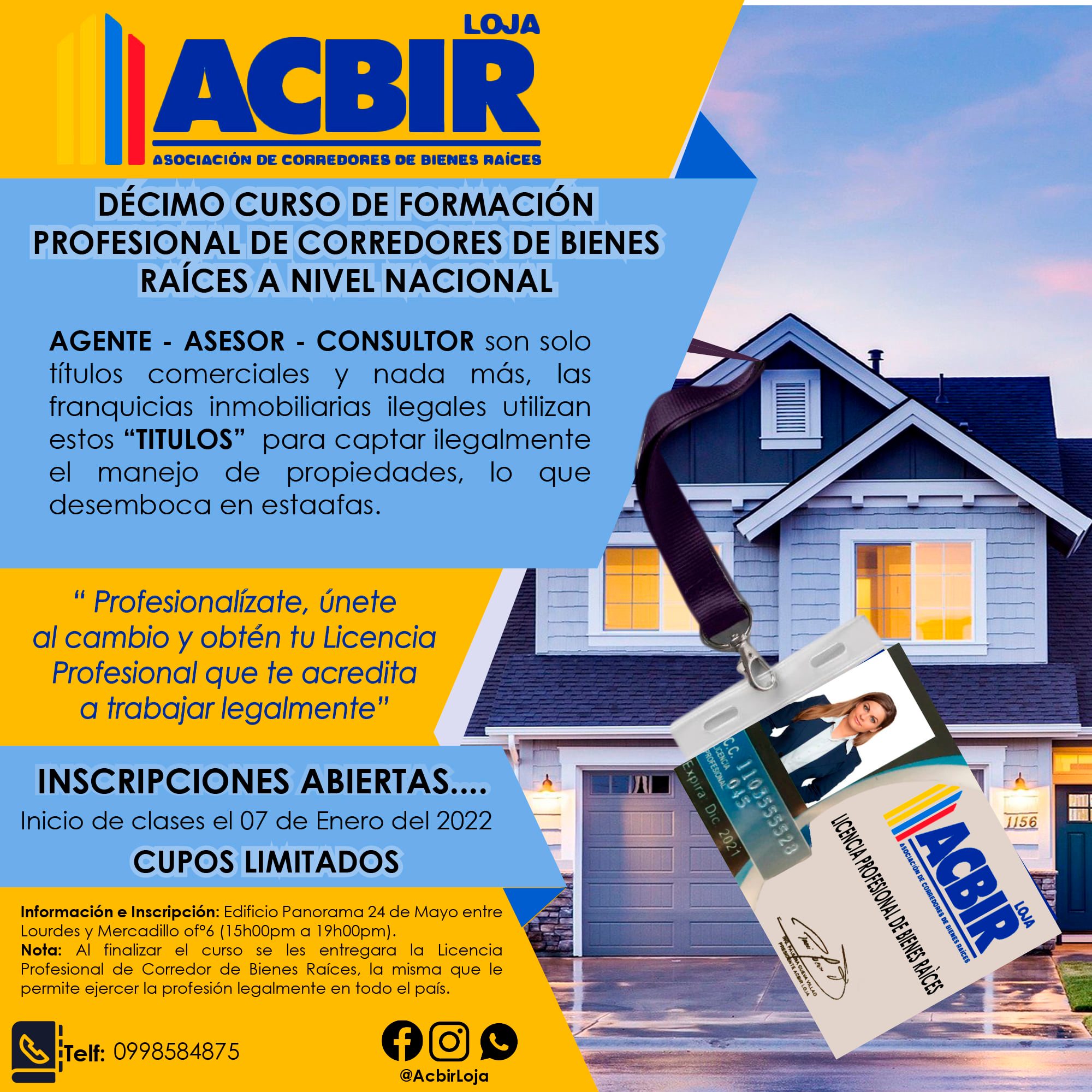 INSCRÍBETE AHORA AL NUEVO CURSO DE PROFESIONALIZACIÓN DE CORREDORES DE BIENES RAÍCES Y OBTÉN TU LICENCIA